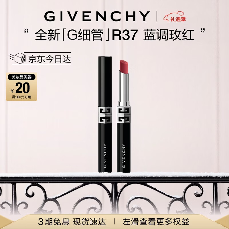 纪梵希(Givenchy)【代言人同款】新品G细管R37蓝调玫红口红唇膏圣诞礼物女生送闺蜜