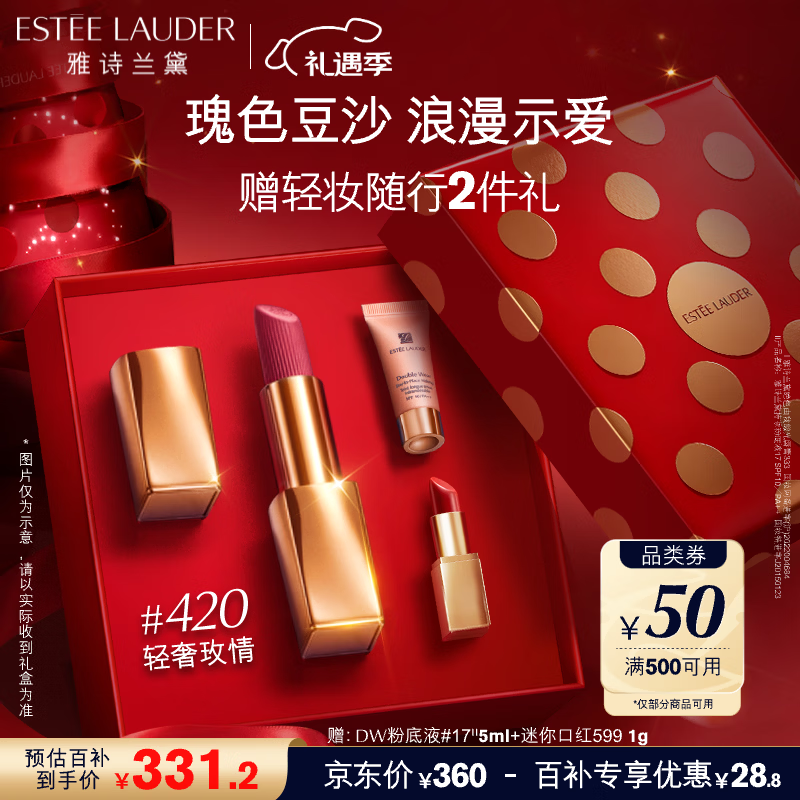 雅诗兰黛绒雾缎光唇膏420#轻奢玫情色口红礼盒化妆品套装圣诞礼物