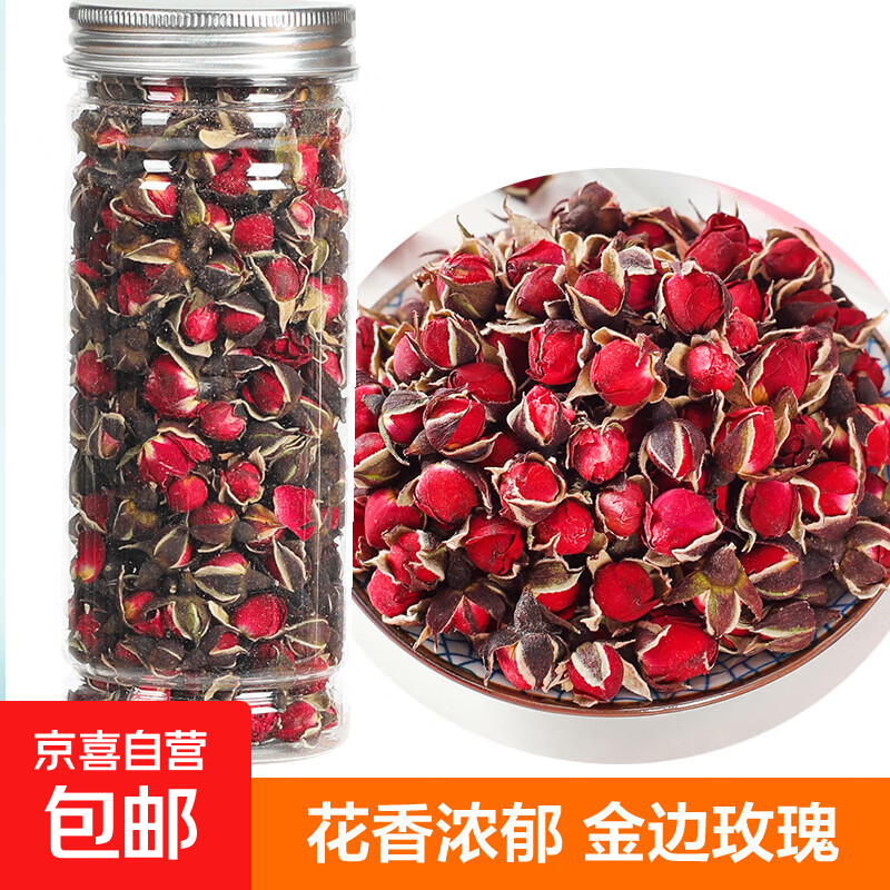 金边玫瑰玫瑰花茶干花无硫泡茶重瓣玫瑰花非平阴玫瑰花冠 1罐50g