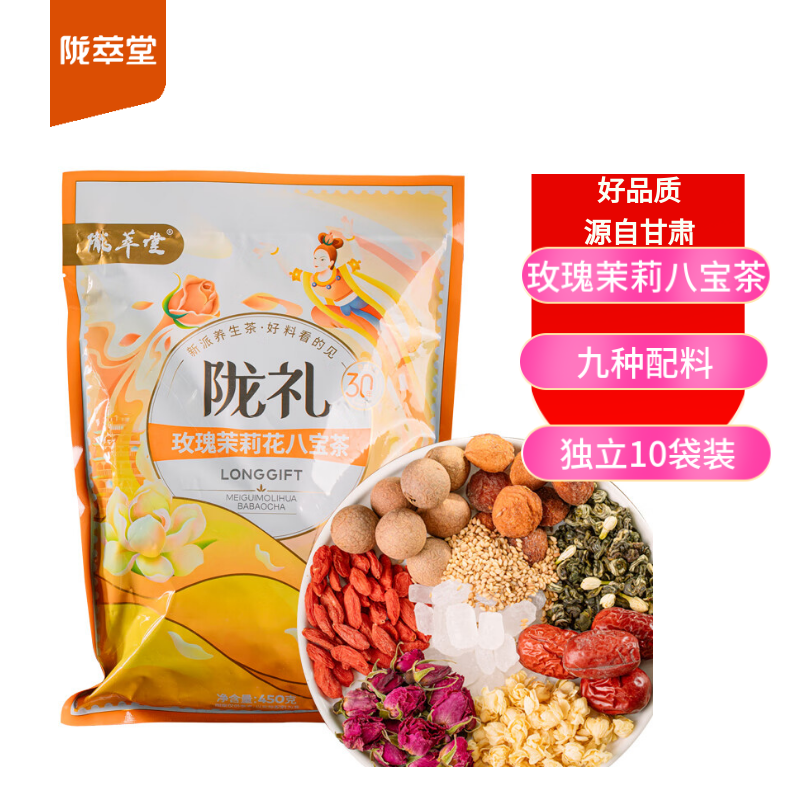 陇萃堂玫瑰茉莉八宝茶450g甘肃兰州特产三炮台桂圆枸杞红枣女士玫瑰茶饮