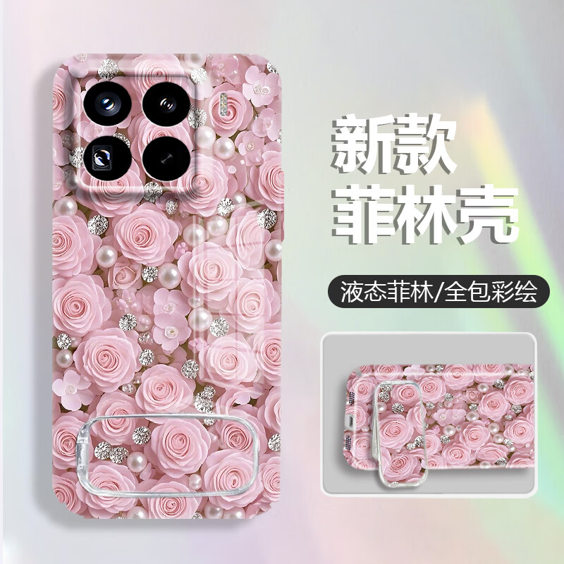 怀智适用于【小米15】满屏圆珠粉玫瑰菲林防摔保护手机壳 菲林-满屏圆珠粉玫瑰+镜子支架 小米15