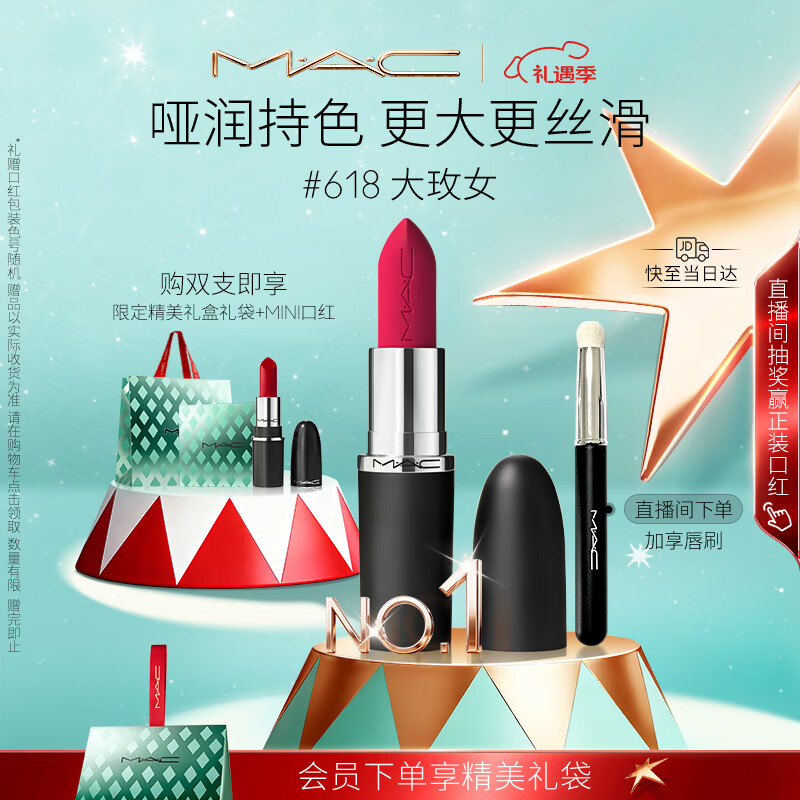 M.A.C魅可新色大子弹头mac口红哑光高级显白#618大玫女 圣诞礼物
