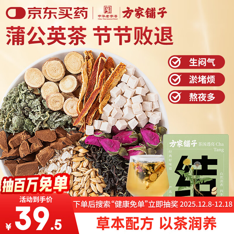 方家铺子蒲公英甘草茶240g 婆婆丁玫瑰甘草搭夏枯草袋泡养生茶包30袋