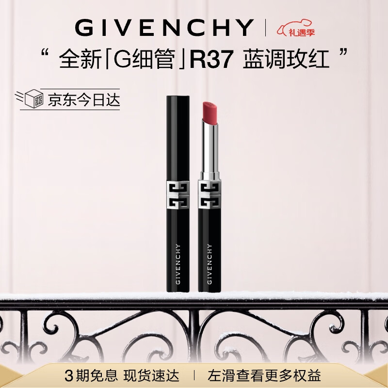 纪梵希(Givenchy)【代言人同款】新品G细管R37蓝调玫红口红唇膏圣诞礼物女生送闺蜜