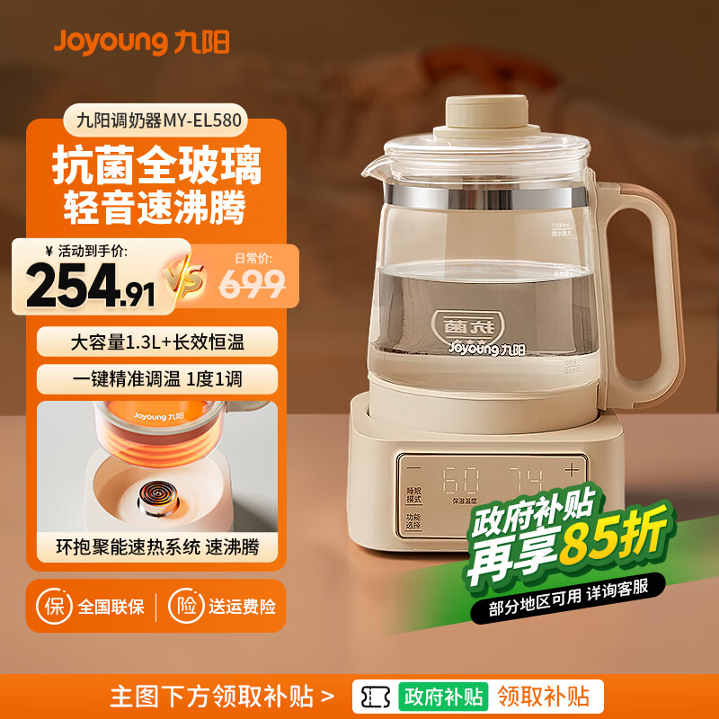 九阳全玻璃恒温壶母婴儿调奶器恒温加热冲奶家用自动恒温烧水壶养生壶 奶油白 1.3L 【全玻璃·抗菌升级】