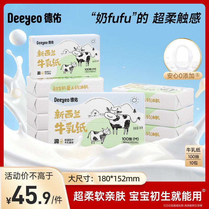 德佑新西兰牛乳纸婴儿云柔巾超柔保湿乳霜纸母婴擦鼻涕鼻炎感冒柔纸巾 【热销力荐装】 3层 100抽*10包