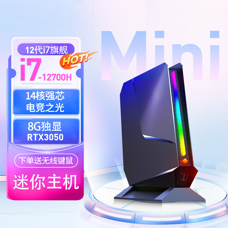 霆硕酷睿i9+RTX4060独立显卡迷你i7台式电脑主机金属miniPC微型小机箱工控机计算机软路由办公游戏电竞 酷睿i7-12700H + RTX3050独显8G 16G内存 + 512G固态硬盘