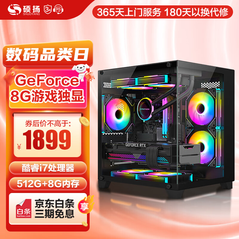 硕扬台式电脑主机台式机办公电脑办公主机组装电脑独显商务财务办公腾讯全家桶游戏电脑全套 配置四:酷睿i7丨8G游戏独显丨512G