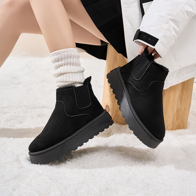 星期六短靴2024雪地冬季靴女加厚女鞋厚底保暖东北加绒棉鞋毛毛鞋 加绒 黑色 36