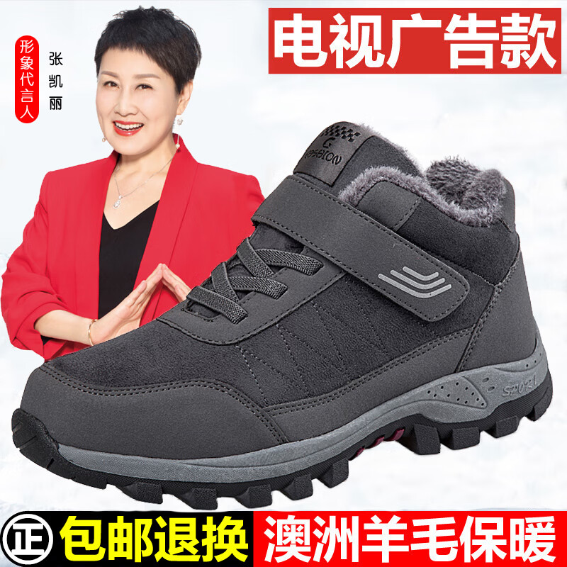 足力健艾爸爸足力健老人鞋男冬季防滑软底中老年加绒加宽羊毛棉鞋雪地靴休闲鞋 1906深灰男款 42 (260mm)