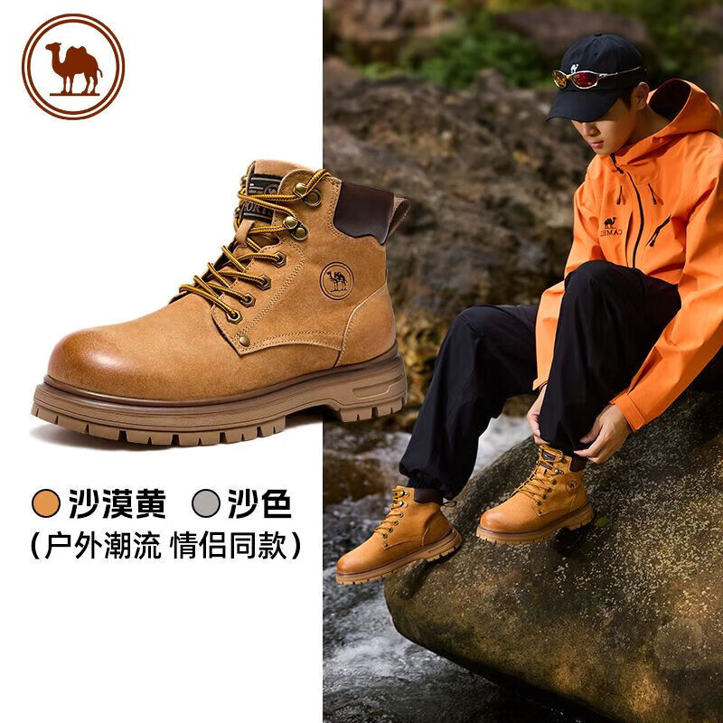 骆驼(CAMEL)【王俊凯同款】会员马丁靴男鞋秋冬新款大黄靴女户外工装登山靴子 GE122W7757T 金黄色(男款) 42