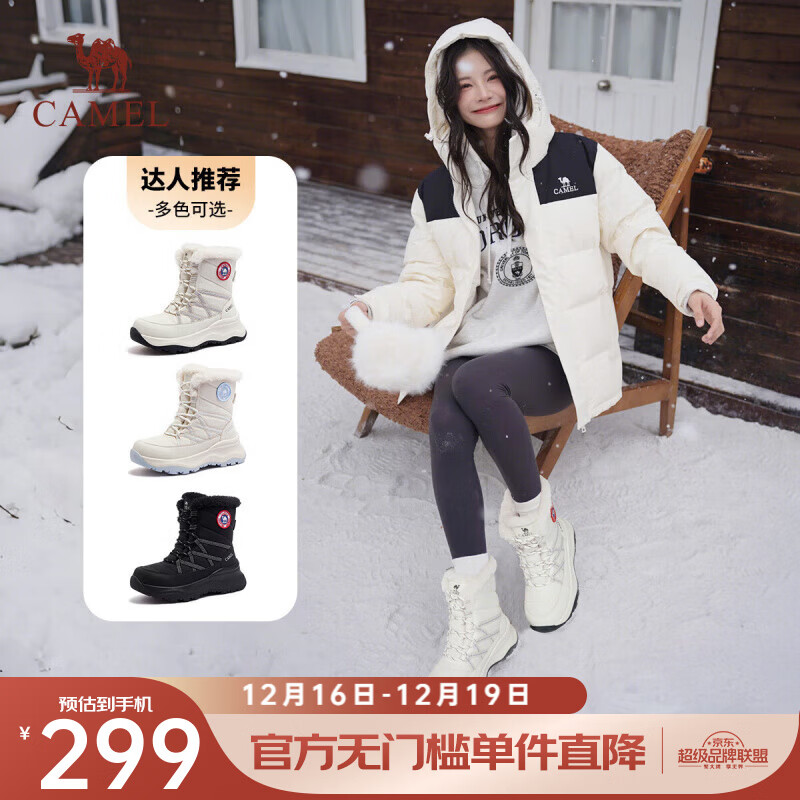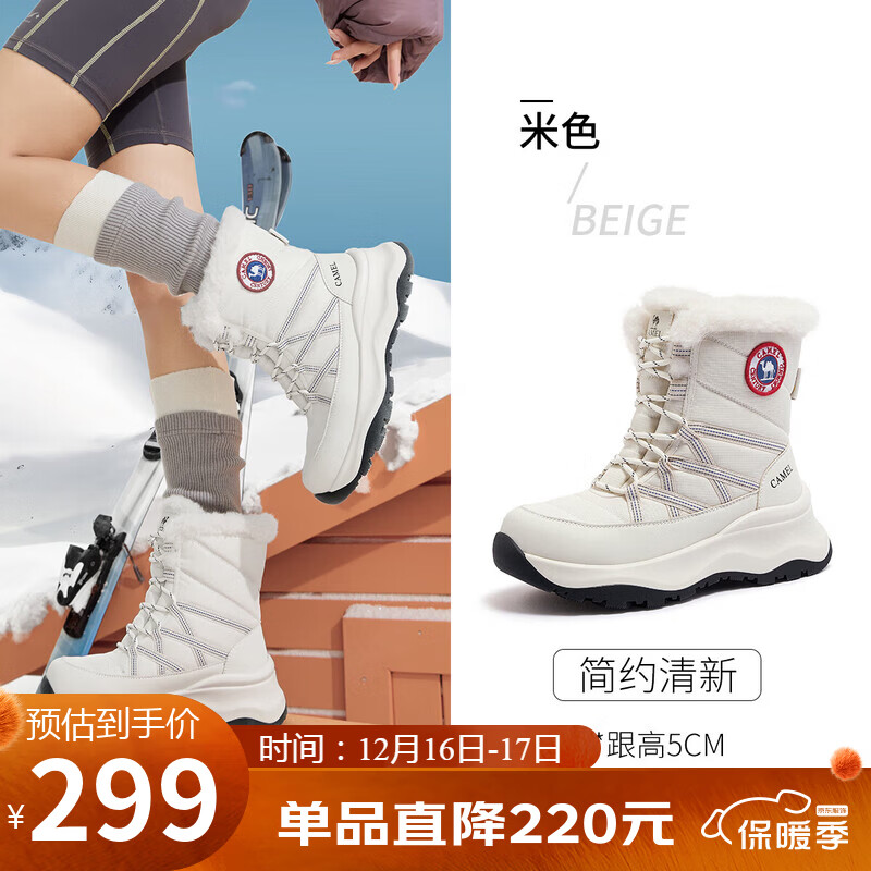 骆驼(CAMEL)女鞋2025冬季新款时尚雪地靴懒人毛毛鞋百搭加绒保暖防寒休闲靴 L25W577050 米色 38