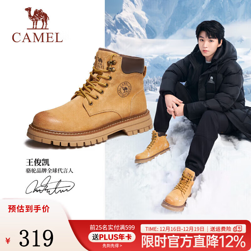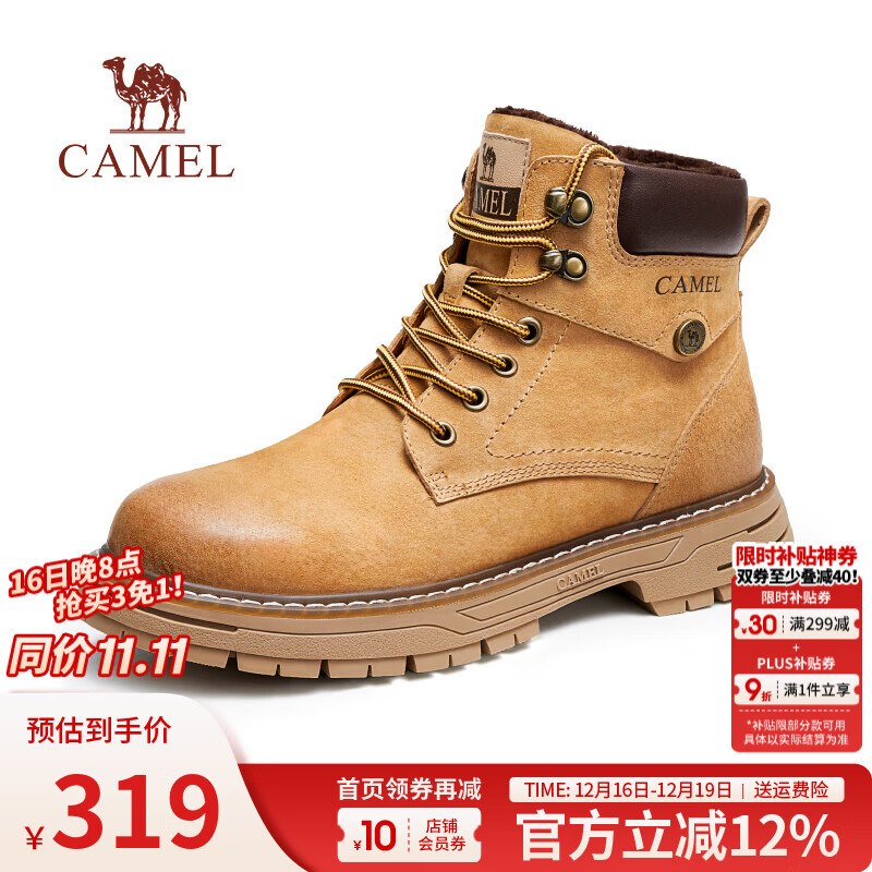 骆驼(CAMEL)男士马丁靴秋冬加绒户外运动休闲复古工装鞋 GE12235362R 卡其 42
