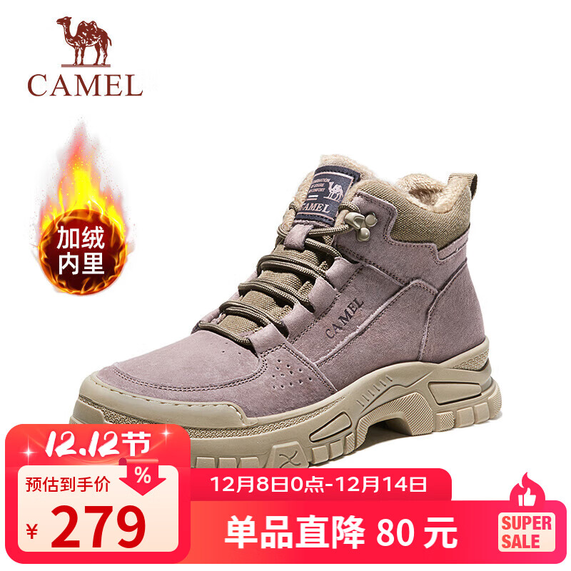 骆驼(CAMEL)男鞋 英伦高帮工装靴男增高户外透气耐磨沙漠靴会员 G13W076021R加绒沙漠黄/咖啡 42