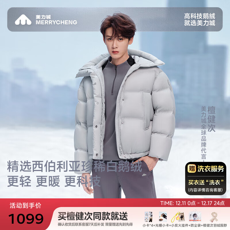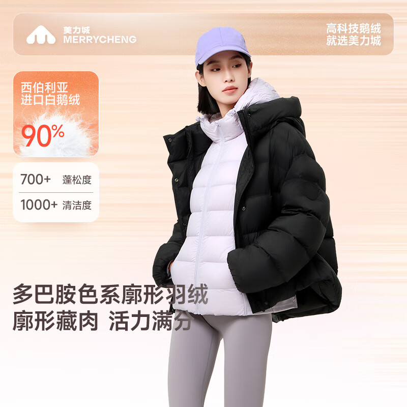 美力城[檀健次同款]短款羽绒服女装外套90%鹅绒暖天鹅轻暖泡芙156 流光银 M 【建议50-60kg】