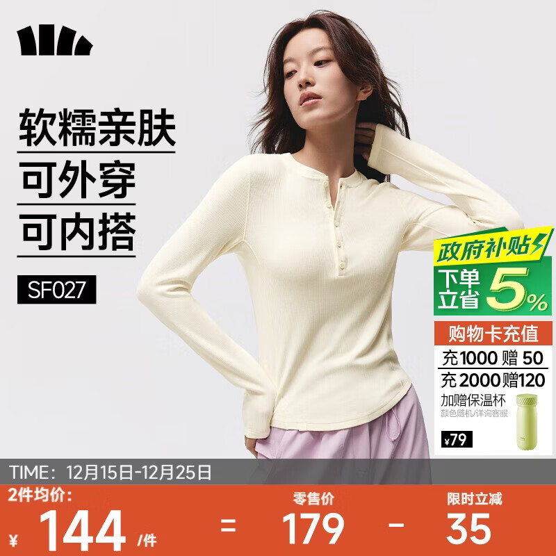 蕉下(beneunder)打底衫女内搭可外穿洋气亨利领长袖T恤女装SF027米M