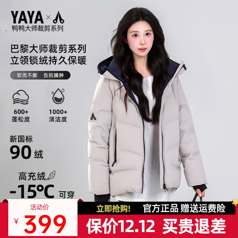 鸭鸭(YAYA)【大师剪裁系列】2025新款女装羽绒服连帽户外运动休闲保暖外套MY 米灰色 L (165)