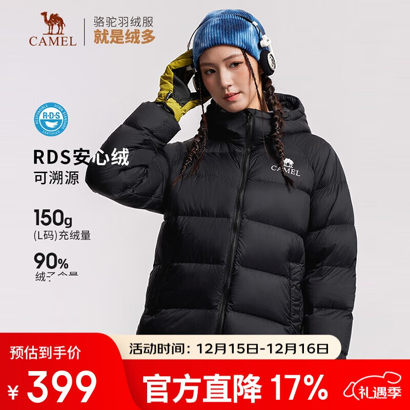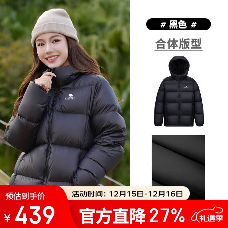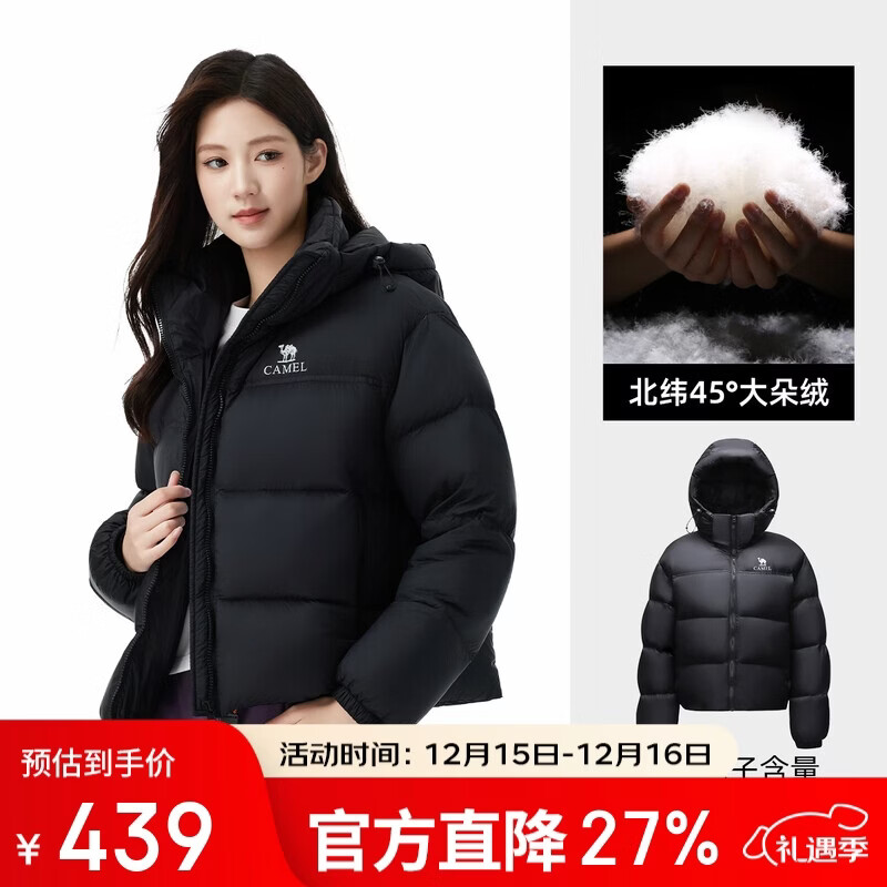 骆驼黑钻3.0短款羽绒服女装冬新款保暖防风连帽羽绒外套面包服