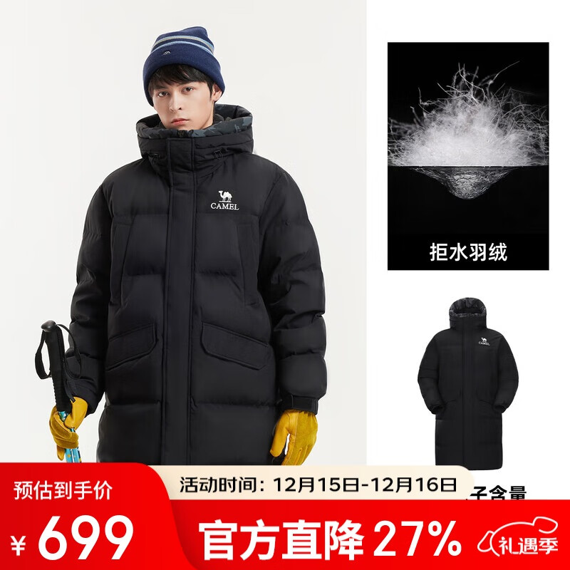 骆驼女装羽绒服冬季新款女款男款中长款加厚保暖三防专业面包服