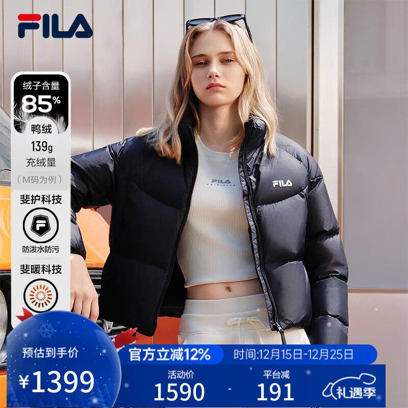 FILA RGB-多彩羽绒|斐乐官方女装羽绒服2025冬季新款时尚休闲短款外套 正黑色-BK L 170/88A/L