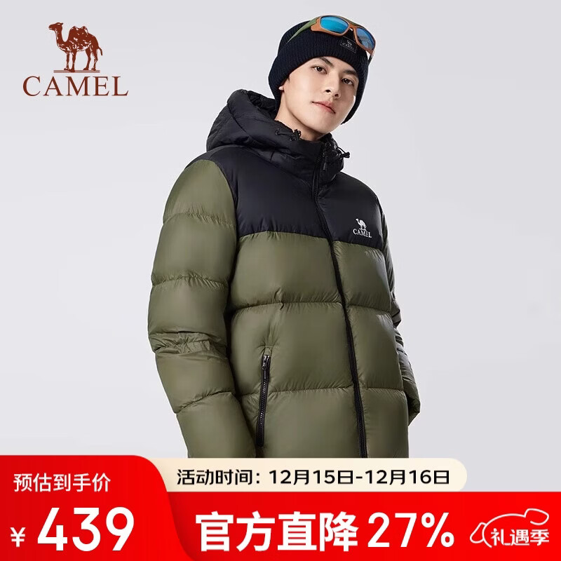骆驼女装情侣款羽绒服男冬季2025新款连帽防泼水保暖面包服外套