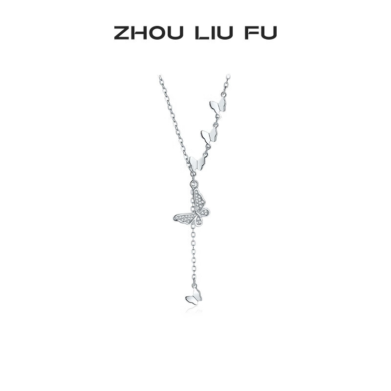 周六福(ZLF)圣诞礼物 S925银饰蝴蝶项链女吊坠灵蝶飞舞百搭链坠生日 链坠链长40+5cm