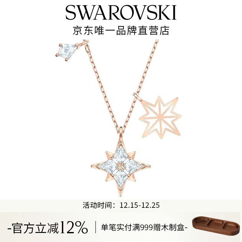 施华洛世奇(SWAROVSKI)圣诞礼物Symbolica星星雪花项链女吊坠轻奢送女友女 镀玫瑰金色 5494352