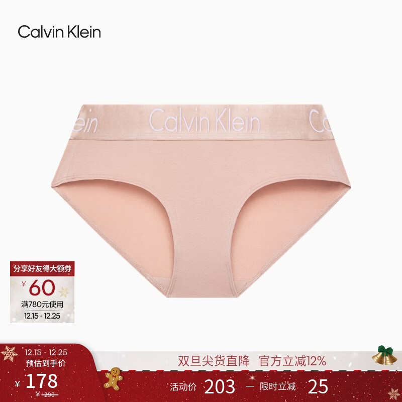 Calvin Klein内衣女士经典提花腰边ck柔软莫代尔混纺防夹臀半包臀三角内裤女 7NS-杏仁色 1条 S