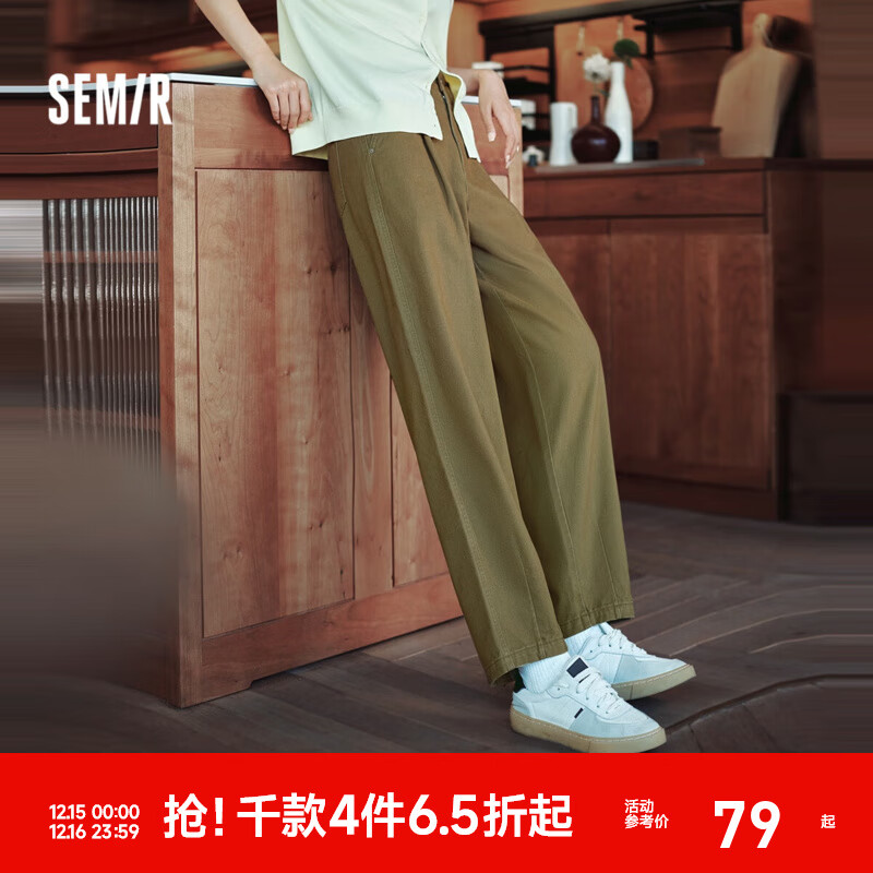 森马[商场同款]休闲裤女简约宽松长裤2024秋季新款显瘦显高锥形裤 豆沙绿40065 M