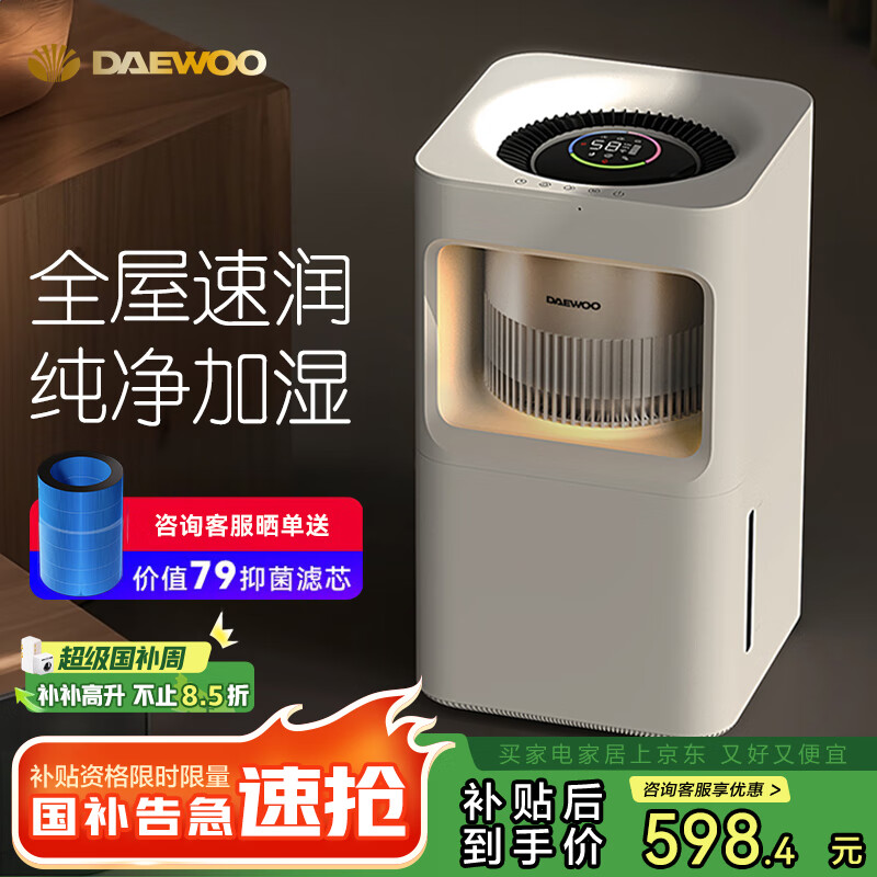 大宇(DAEWOO)无雾加湿器家用卧室空气净化一体机鼻炎母婴幼儿大容量蒸发式静音客厅办公室大面积智能落地式增湿 WiFi除菌款J20