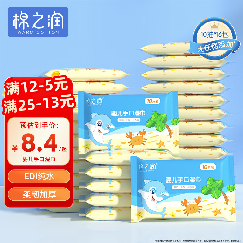 棉之润婴儿手口湿巾小包便携学生儿童专用湿纸巾10抽*16包随身出行装