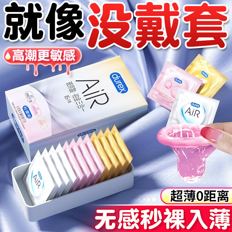 杜蕾斯(durex)空气快感三合一避孕套 超薄裸入隐形001003男女用持久延时安全套 空气0套感【16只】AiR玻尿酸铂金三合一16