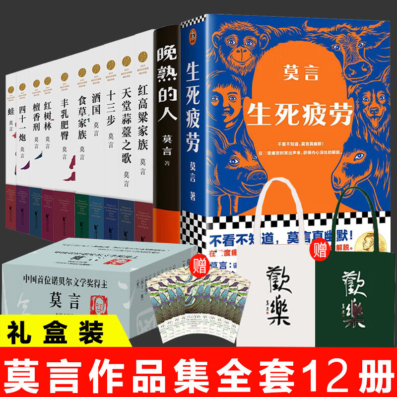 莫言小说作品全集礼盒装全套12册 生死疲劳+晚熟的人+红高粱家族+天堂蒜薹之歌+十三步+酒国+食草家族+丰乳肥臀+红树林+檀香刑+四十一炮+蛙